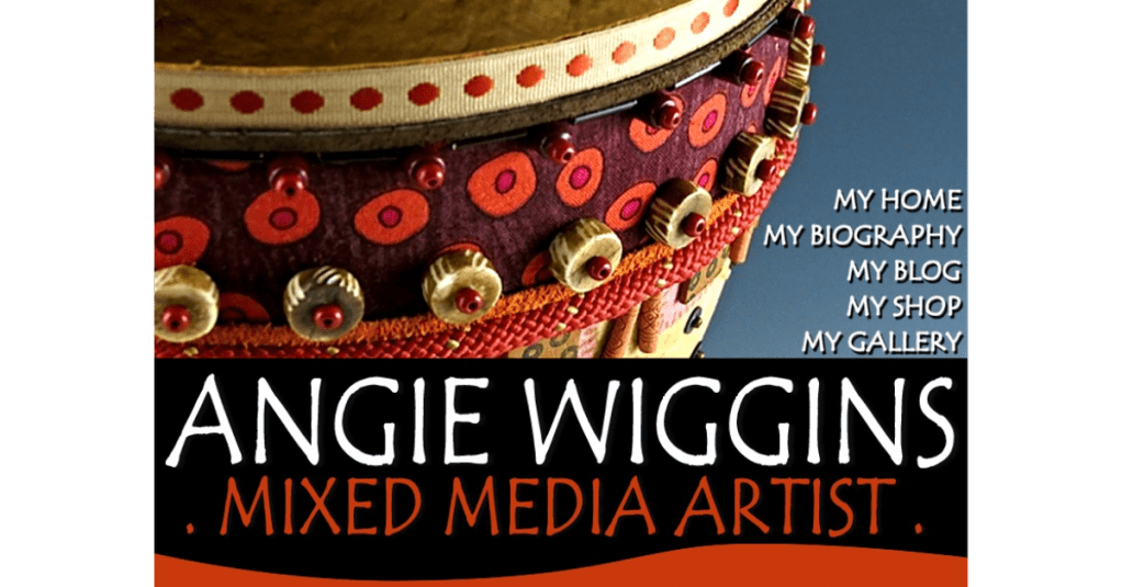 Having begun her artistic career as a weaver and fiber artist, Angie Wiggins has an insatiable interest in learning about all kinds of media in the art and fine craft world. After a decade of weaving, her interest turned to paper-making as well as felt-making. She took classes in both, but it was paper-making that won her over. Handmade paper bowls became the canvas onto which Angie embellishes all sorts of media: glass beads, leather, rubber, fabric, reeds, metal, paint, feathers, and wood, to list a few.