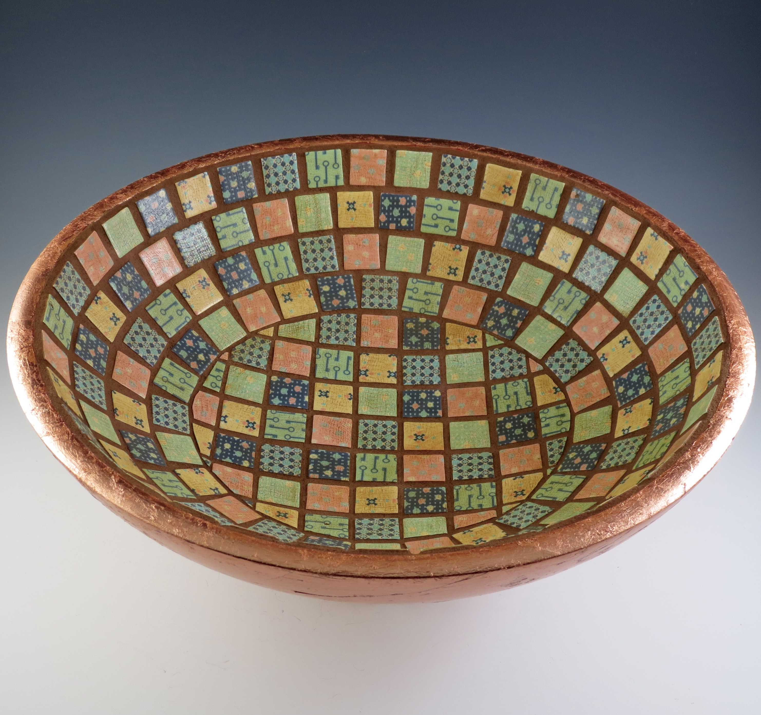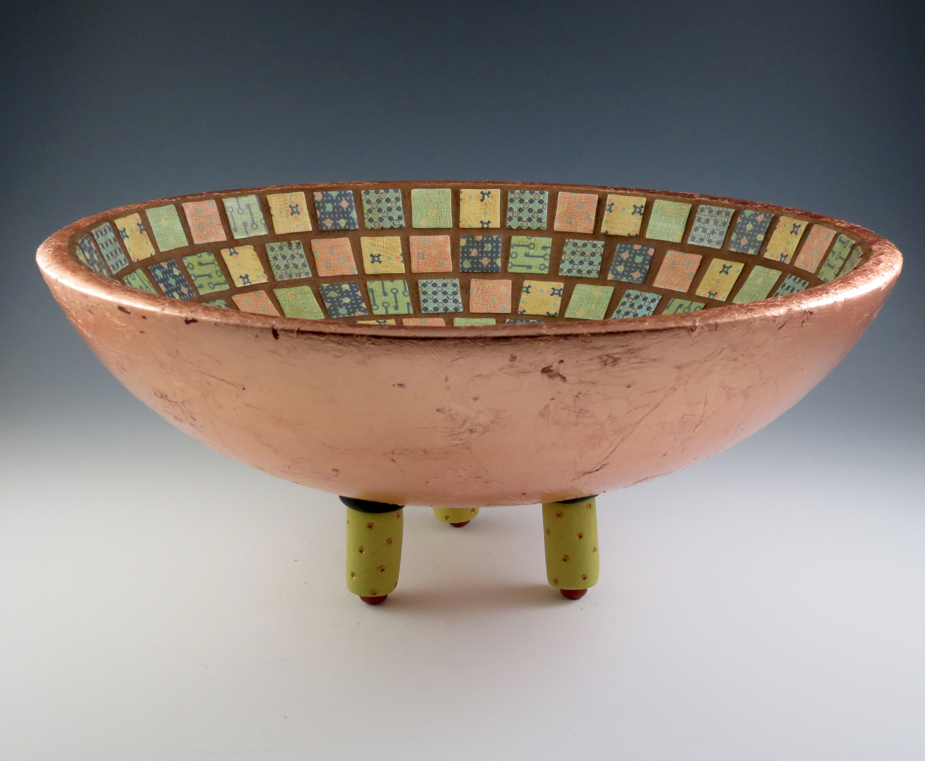 This piece is my second mosaic bowl that I have recently completed. It is title ‘Nana’s Quilt Stash’.